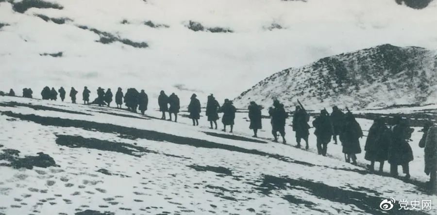 1950年3月,人民解放军开始向西藏进军,10月6日至24日进行了昌都战役,攻占昌都,打开了进军西藏的大门,为和平解放西藏奠定了基础。图为迂回昌都南路的人民解放军行进在海拔5000米的怒山山脉雪岭上。