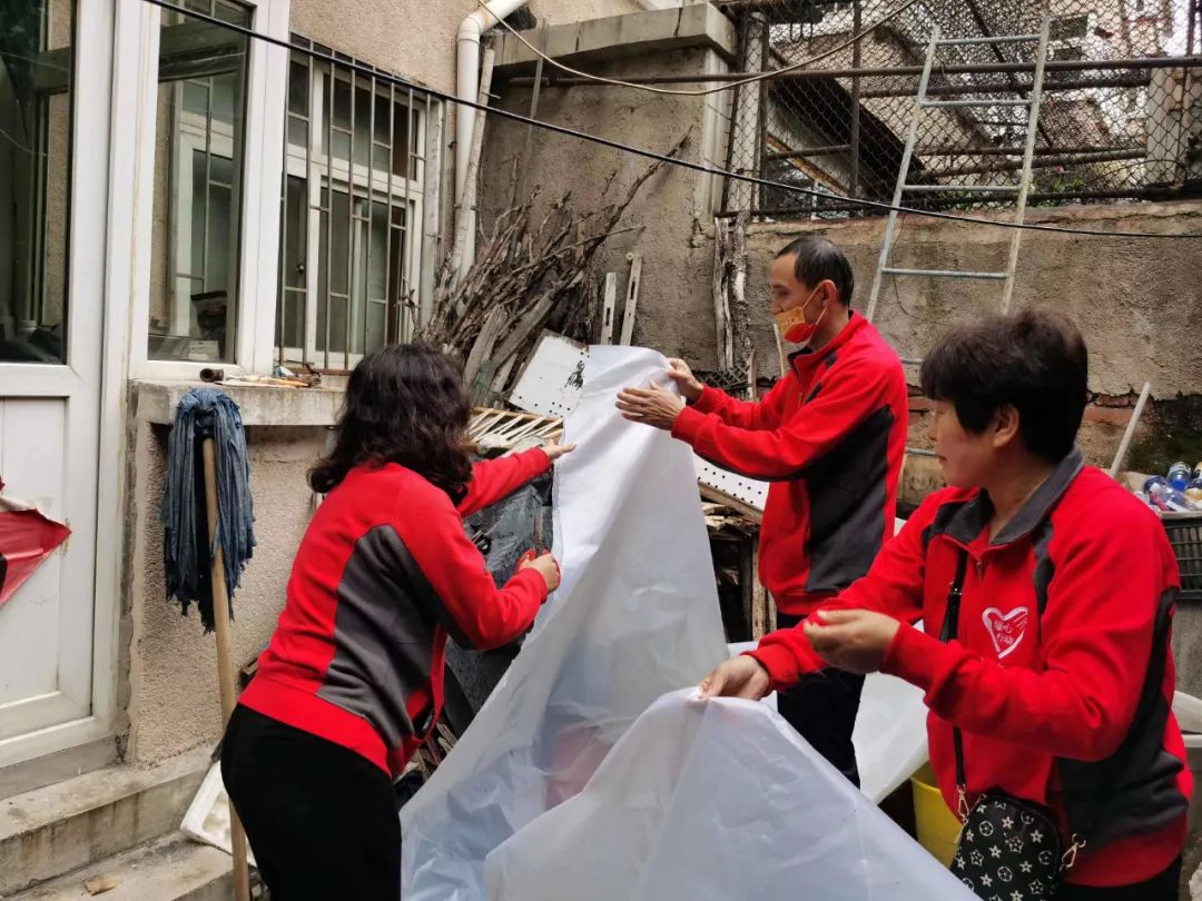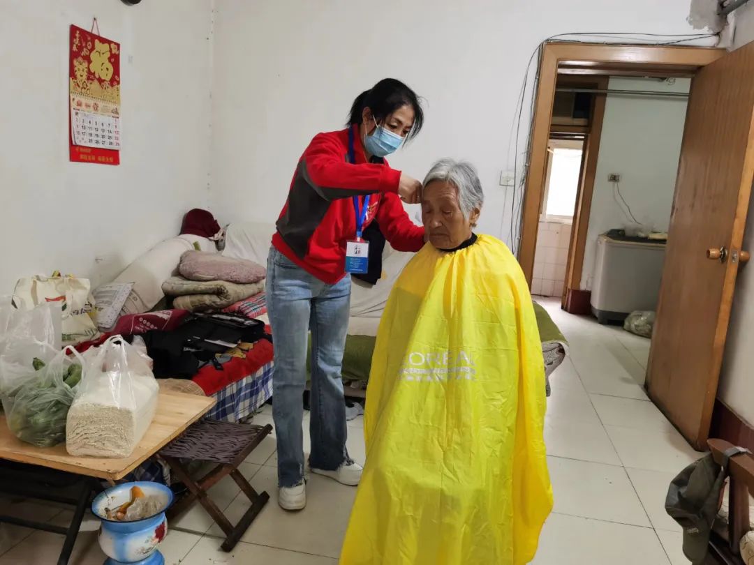 随后,志愿者们用塑料布把院里的柴火遮盖严实,并为老人修剪头发和指甲。老人握着志愿者的手,不停地重复道:“啥事都想着我,有你们真好!”
