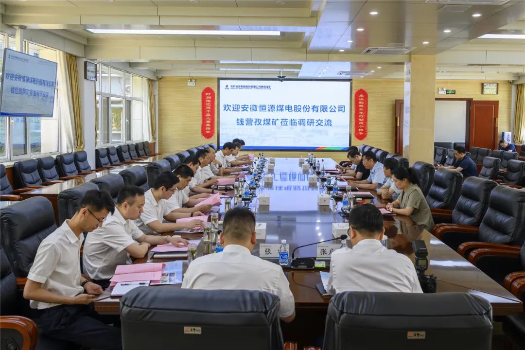 6月23日,安徽恒源煤电股份有限公司钱营孜煤矿一行14人来矿调研交流。矿长郭英、党委书记赵计华、副矿长李鲁杰及相关副总师、科室负责人在第六会议室接待了他们。