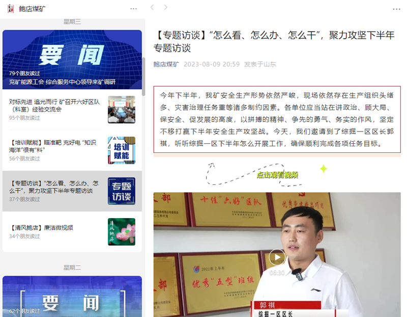 访谈节目播出后,在我矿广大干部职工中引起强烈反响,大家纷纷表示,通过观看访谈,极大地激发了工作干劲,提振了干部职工的“精气神”,要以此为动力,切实把思想和行动统一到两级公司及矿的决策部署上来,坚定信心,担当实干,锐意进取,为实现全年任务目标贡献力量。