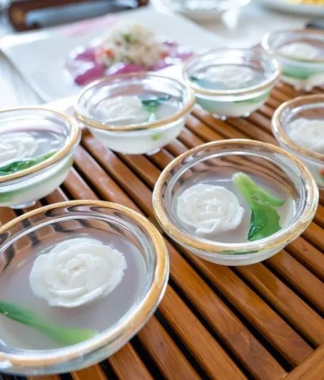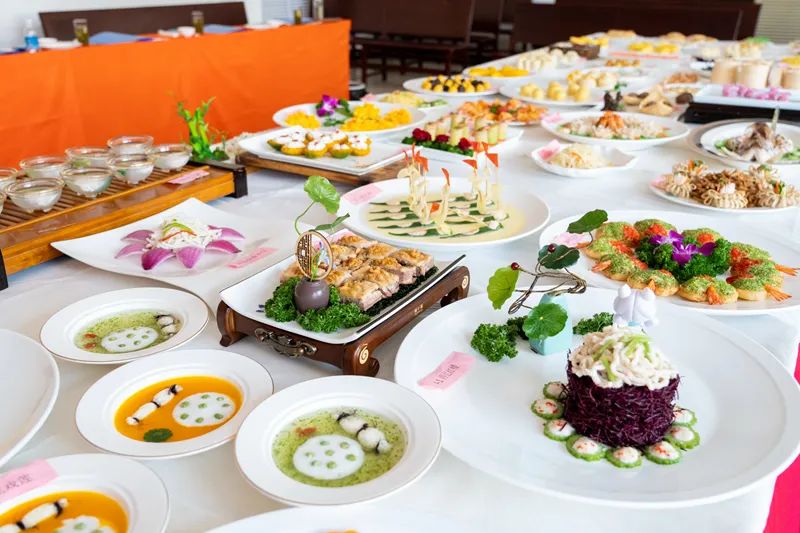 向阳双菌、荷花戏莲、富贵牡丹、翡翠鱿鱼花,一道道热菜令人垂涎欲滴、欲罢不能。天鹅酥、桃山皮蔓越莓月饼、水晶桃花、核桃包,别致的造型、扑鼻的香味,中式面点的魅力得到全新诠释。