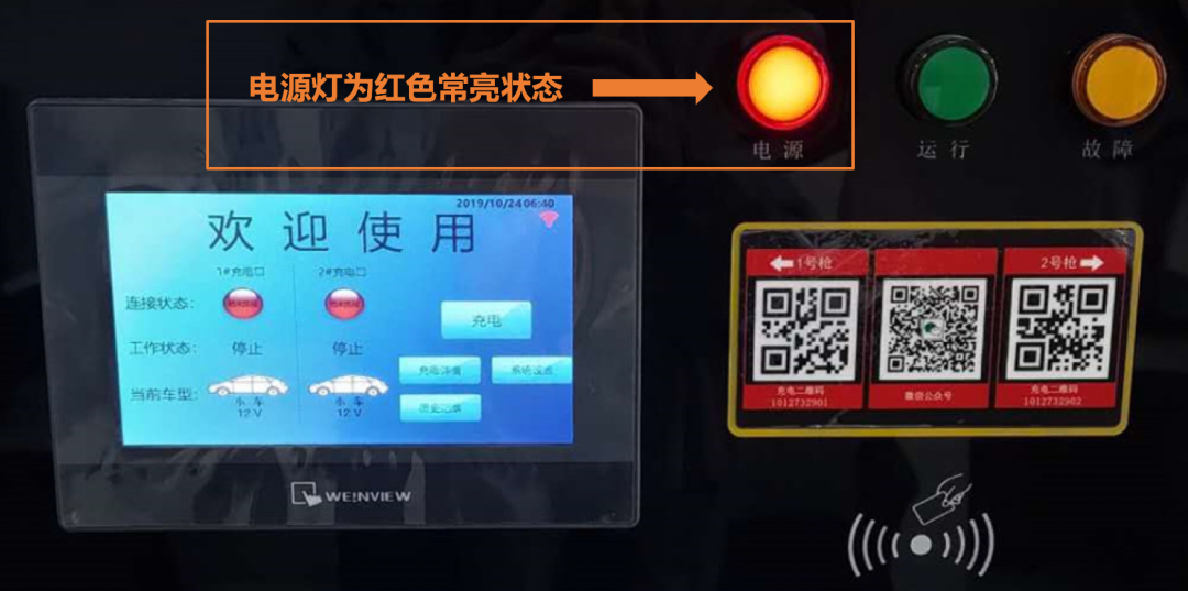 确认充电桩的运行灯处于绿色常亮状态,说明充电桩仍在运行。