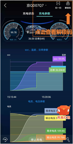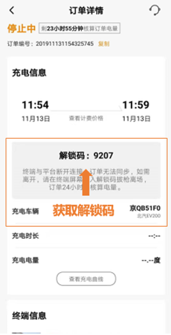 如果点击停止充电无反应,不慌,先获取解锁码。