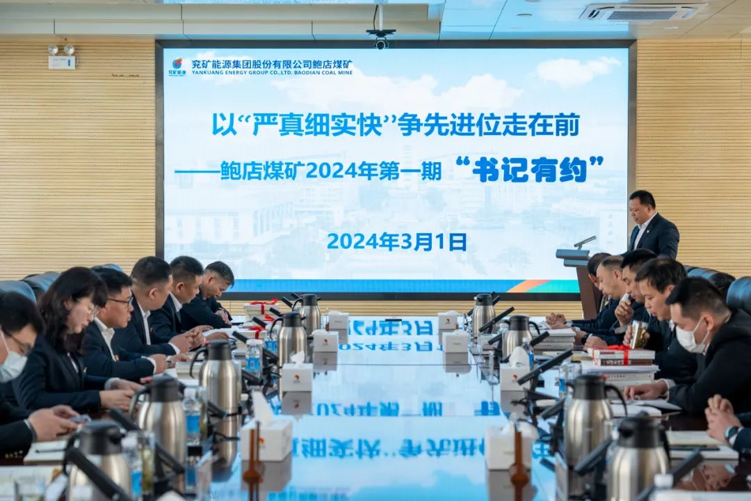3月1日,在鲍店煤矿第六会议室,第一期“以‘严真细实快’争先进位走在前”为主题的“书记有约”活动正在举行。选煤中心党总支书记袁国荣与大家分享了体会、交流了做法。