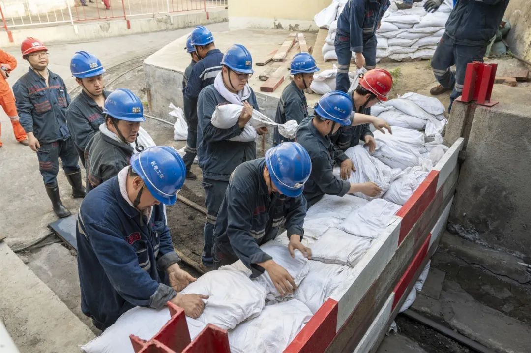 随着一阵急促的防洪警报声响起,地面各抢险救援队伍快速赶往南办公楼下集结。调度员利用语音广播、调度台全呼功能、行政电话、生产电话和无线通讯系统通知井下各作业地点和各单位值班人员停产撤人,清点下井人数;通知各指挥部成员及专业组成员,到达指定地点,按规定向上级部门汇报;向各防洪抢险队伍负责人,传达抢险指令。