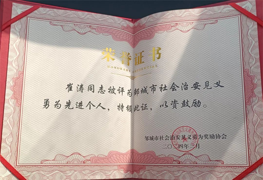 面对生与死是他的常态,但每一次拼力相救是他坚守的初心使命。邹城市社会治安见义勇为先进个人的证书颁发到他手中的时候,他却说:“参与志愿服务让我变得更坚强、勇敢,更愿意热爱他人、奉献自我,不是我做了伟大的事,是志愿服务成就了我。”