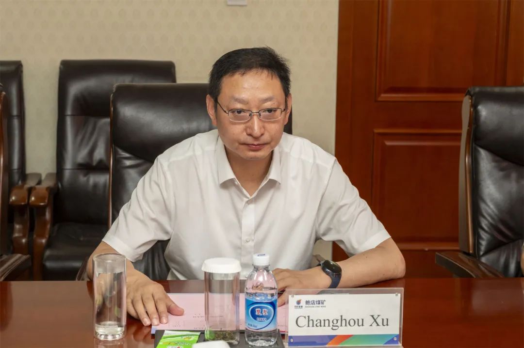 徐长厚欢迎兖煤澳洲公司客人来矿调研交流工作,简要介绍了矿井智能化工作开展情况。