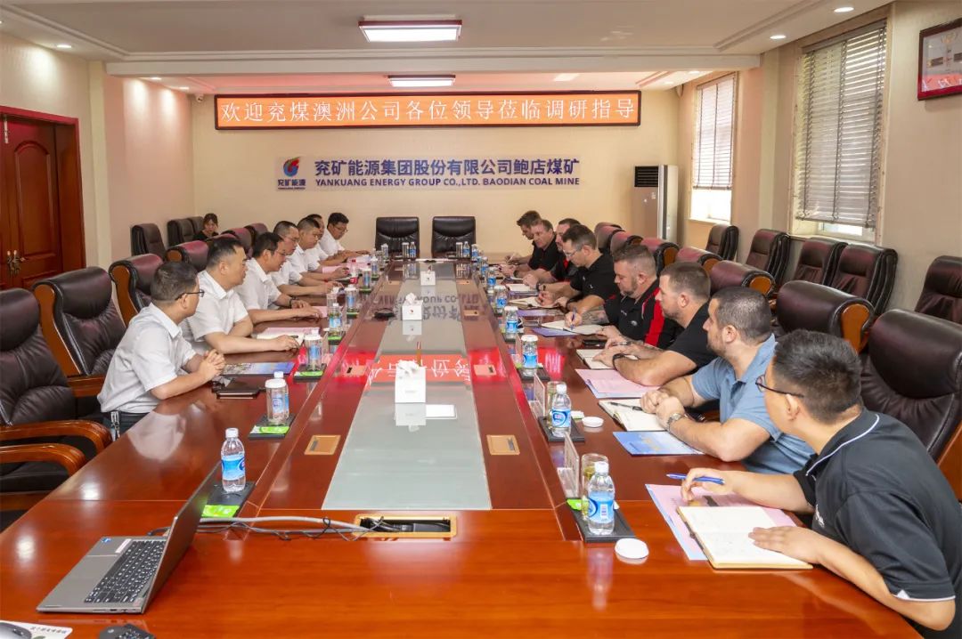 6 月 28 日,兖煤澳洲公司客人来鲍店煤矿开展智能化技术交流。矿长徐长厚,副矿长李鲁杰及相关副总师、科室负责人在第一会议室接待了他们。
