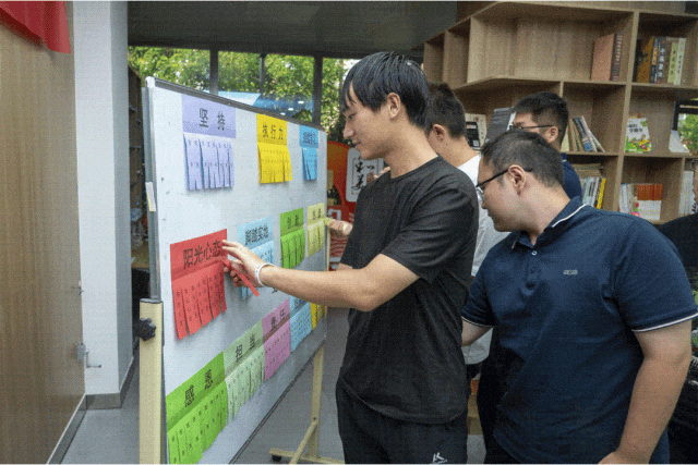 新员工们纷纷走上台来,在白板上选择自己在今后工作生活中需要做到的三个关键词。两名新员工代表发言,分享了自己对执行力、持续学习、阳光心态、热爱的理解。主持人为彭祥超、齐知利两位嘉宾,准备了一份特别的礼物。一封他们刚入职时,写给未来自己的信。两位嘉宾现场分享了信上的文字,重温了自己刚入职时的初心。写一封信,致未来的自己,新员工们以信件的形式抒怀,让青春时光机记录下今日初遇的憧憬与未来美好的期许。
