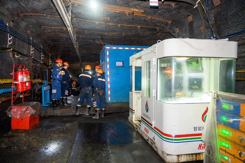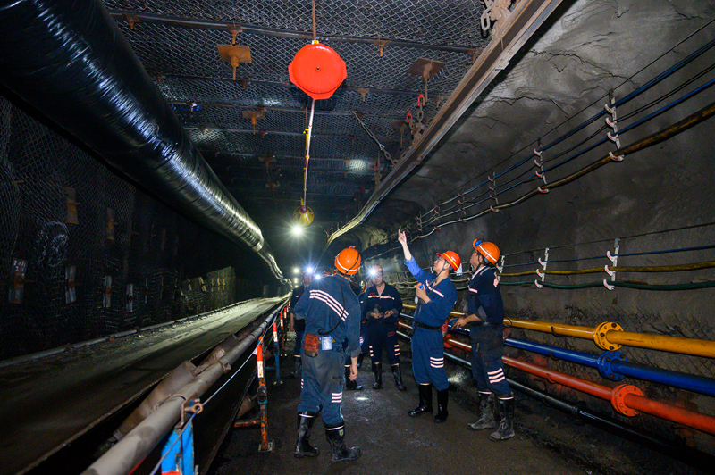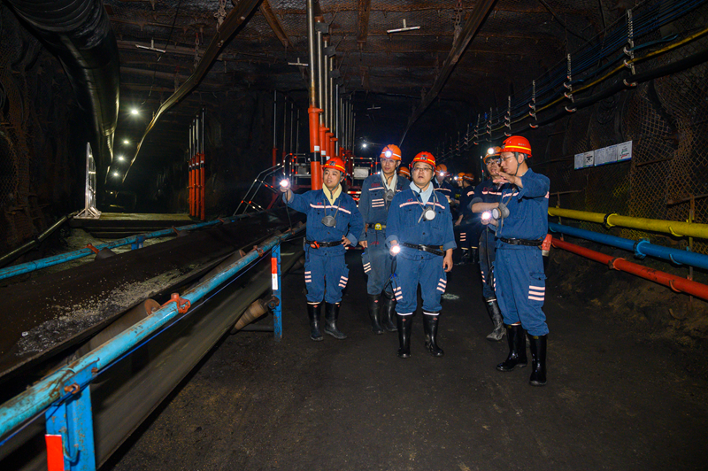 与会人员现场参观了由综掘二区负责施工的八采区西南部一号胶带上山智能掘锚工作面,认真查看沿途牌板安设、管线吊挂、皮带架调直等现场状况,并就物料码放、底板清理、巷道成型、支护质量和防尘降尘等工作作业标准及管控难点进行热烈讨论。