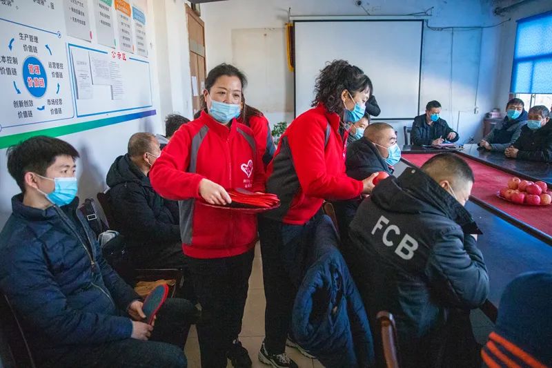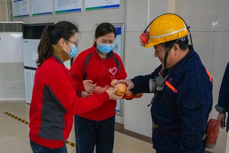 1月1日,矿工会女工委组织女工协管员进区队、到井口开展“元旦送温暖协管嘱安全”活动。在生产准备工区会议室,女工协管员为一线工人宣读安全倡议书、表演歌曲等节目并发放平安鞋垫和平安果、吉祥橘,向工人师傅们致以节日问候,叮嘱他们要按章操作,牢记安全生产。在井口候罐大厅,协管员们将准备好的热豆浆、面包、平安果送给下班升井的师傅们,以热情周到的服务,赢得现场职工的一致好评。据了解,矿工会女工委精心设计开展安全服务活动,旨在发挥亲情协管安全优势,进一步筑牢矿井安全生产第二道防线,构建安全生产的“大后方”,营造亲情协管安全、促进矿井安全生产的浓厚氛围。井下生产及辅助区队的职工们纷纷表示,为了家庭的幸福和企业发展,一定会时刻绷紧安全弦,规范作业行为,确保个人家庭幸福,助力矿井平安发展。