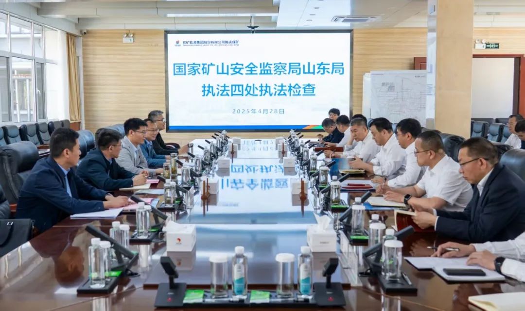 4月28日,国家矿山安全监察局山东局执法四处来鲍店煤矿开展执法检查。兖矿能源安全总监齐俊铭及相关部室负责人陪同检查。总工程师赵延冰,副矿长、安全总监徐开亚,相关专业副总师及部室负责人在第六会议室接待了他们。