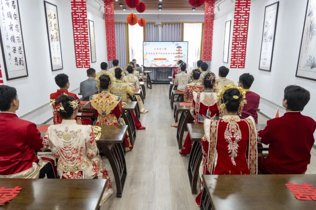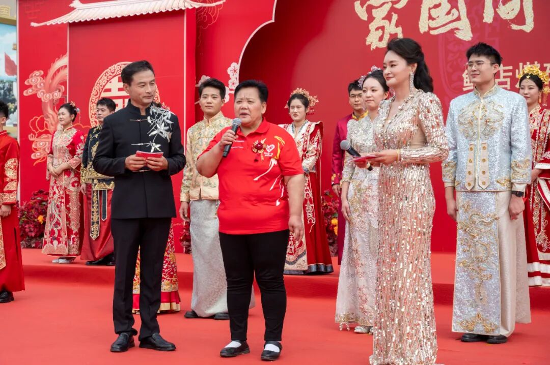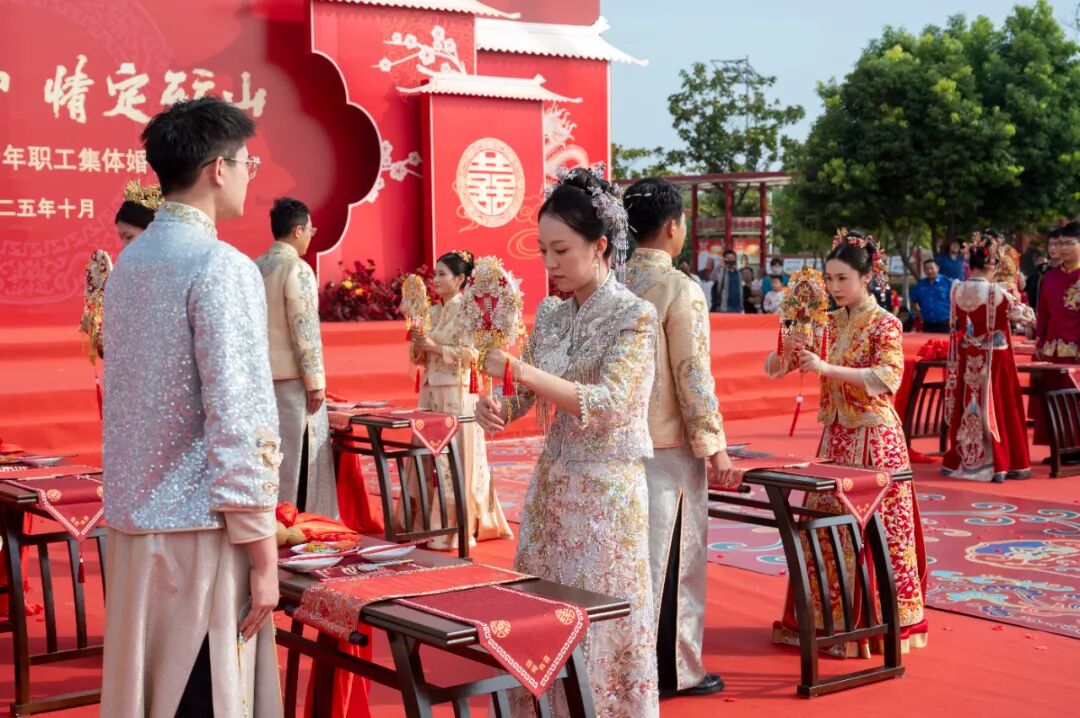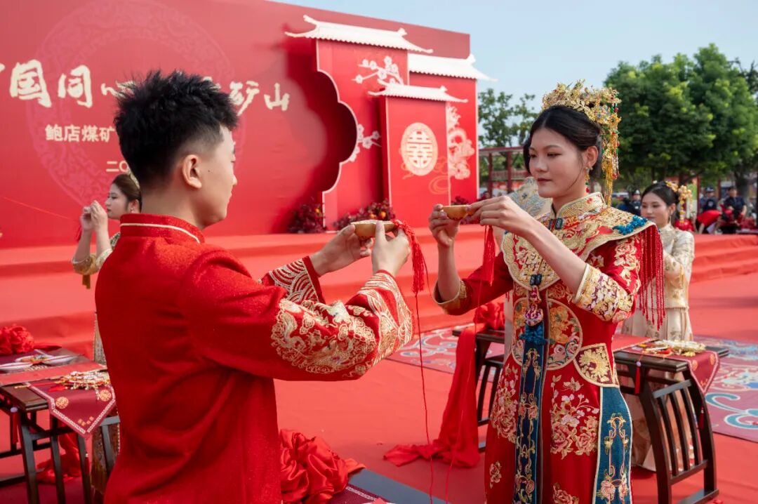 “巍巍中华,衣冠上国,今日以古礼为媒,以山河为证,以矿山为凭,成全这十对金玉良缘!” 主持人的话语,让这场婚礼不仅是新人的幸福仪式,更成为传承中华文化根脉的生动实践。