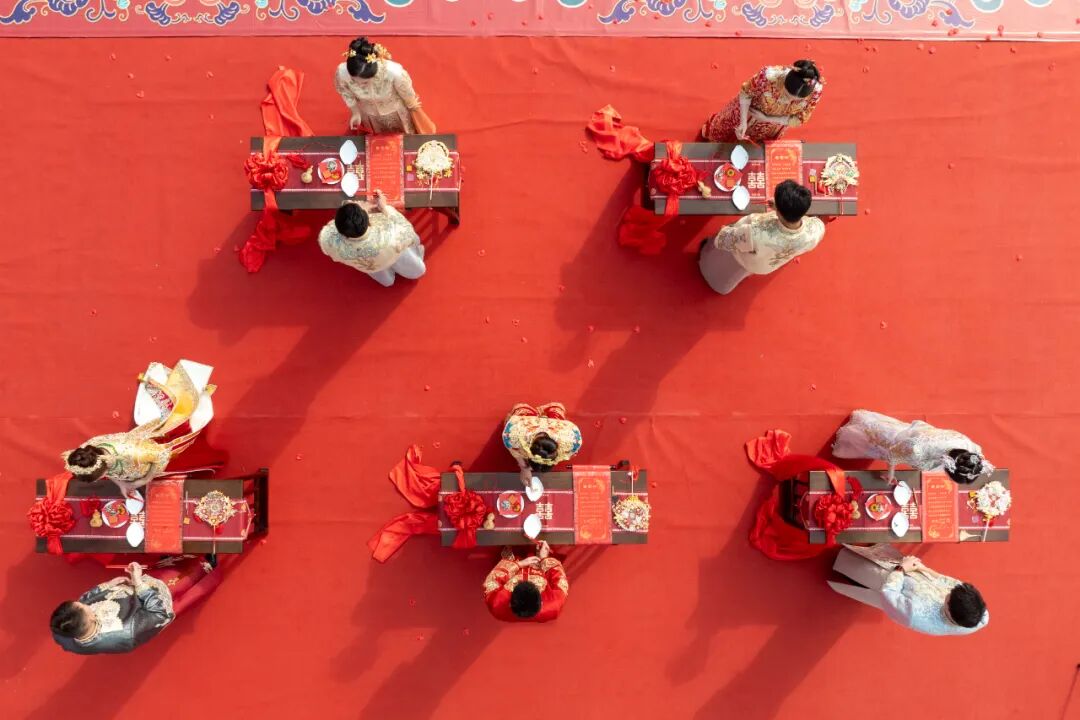随后,一场场充满传统韵味的礼仪接连上演,让在场观众沉浸式感受华夏婚俗之美。