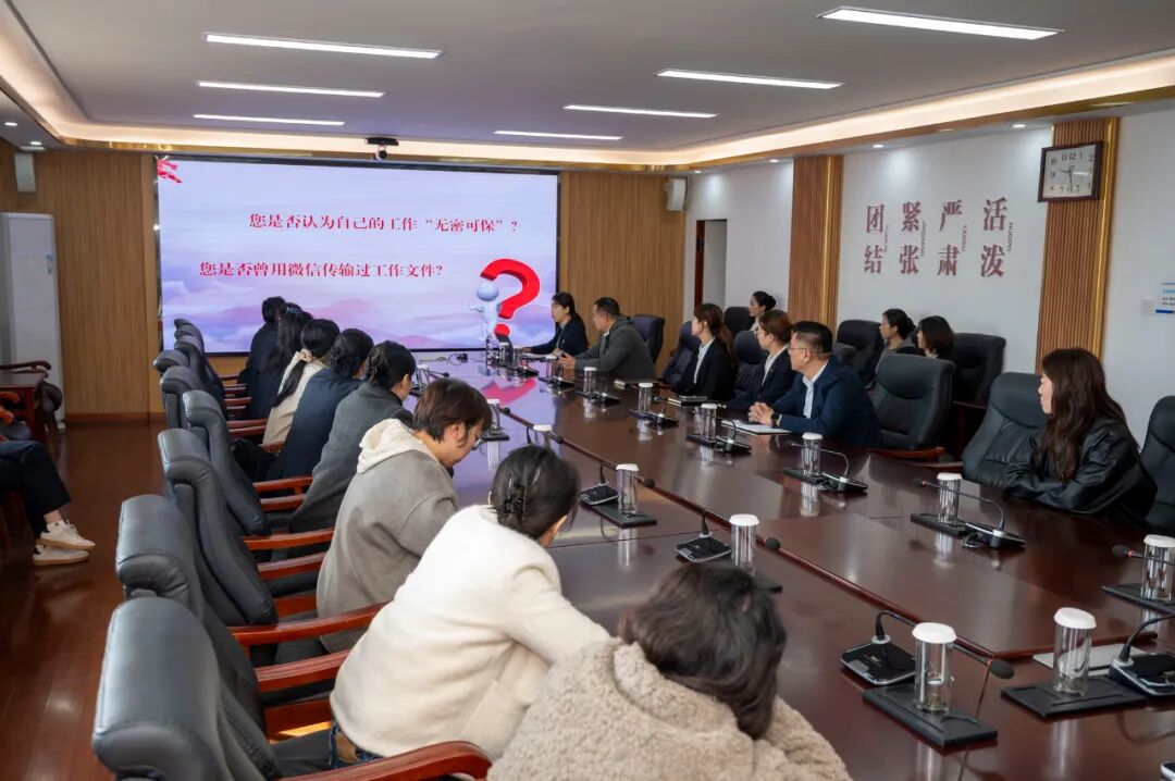随后,综合办公室机要保密秘书路建青以《掌握保密知识常识 严守保密纪律红线》为题,围绕“保密重要性”“泄密风险点”“典型案例警示”“保密工作方法”四个方面,结合矿井日常工作场景,剖析潜在保密隐患。通过分享典型泄密案例,让参训人员深刻认识到保密工作的严肃性与紧迫性,引导大家筑牢信息安全防线。