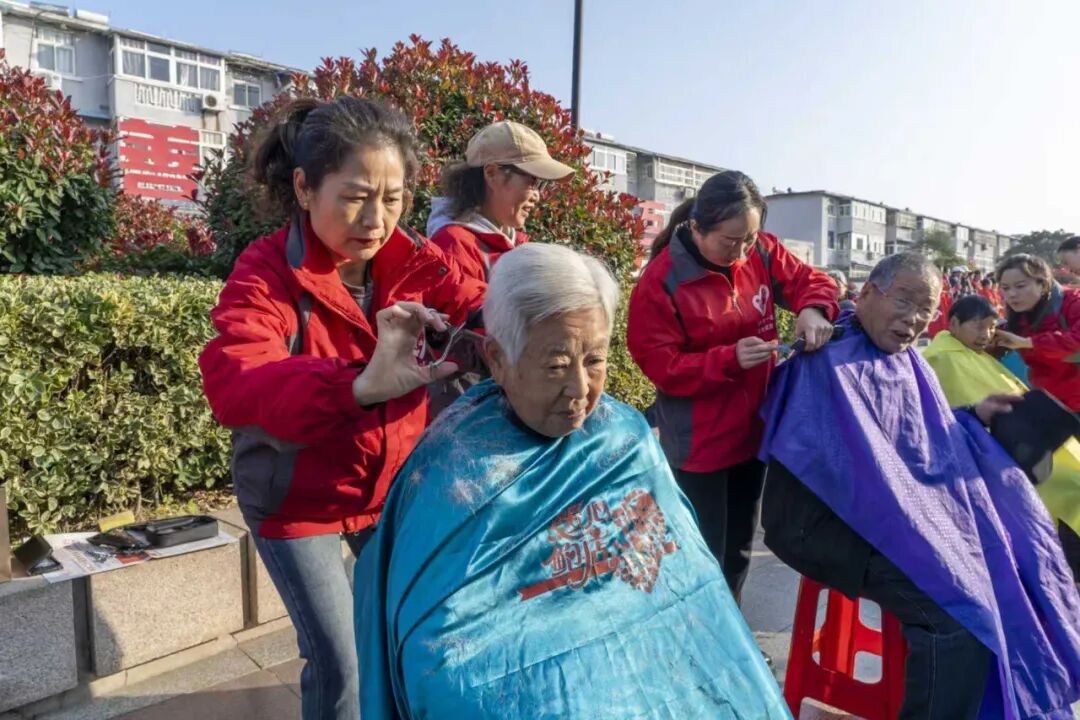 义务理发现场,雷锋理发队的志愿者们一边帮老人理发,一边热情地和他们攀谈。他们认真听取老人们对发型的要求,剪刀声清脆利落,一推一剪、手法娴熟,不一会儿就将头发修剪得整整齐齐,一张张面孔精神焕“发”,老人们对志愿者们的理发手艺连声夸赞。旧物置换区域前志愿者帮助老人们挑选心仪的衣物,一件件叠放整齐的衣物递到老人手中,老人们脸上洋溢着满足的笑容。
