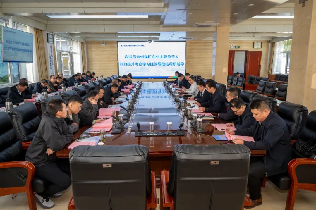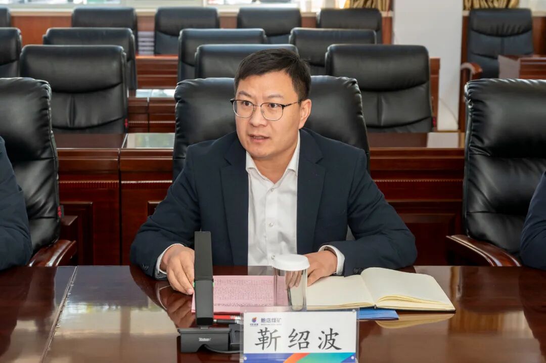 鲍店煤矿矿长靳绍波欢迎昌吉州客人来矿调研交流工作,简要介绍了矿井基本情况。在观看了矿井形象专题片《光和热的故乡》后,双方围绕安全生产、智能化建设等工作进行深入交流。