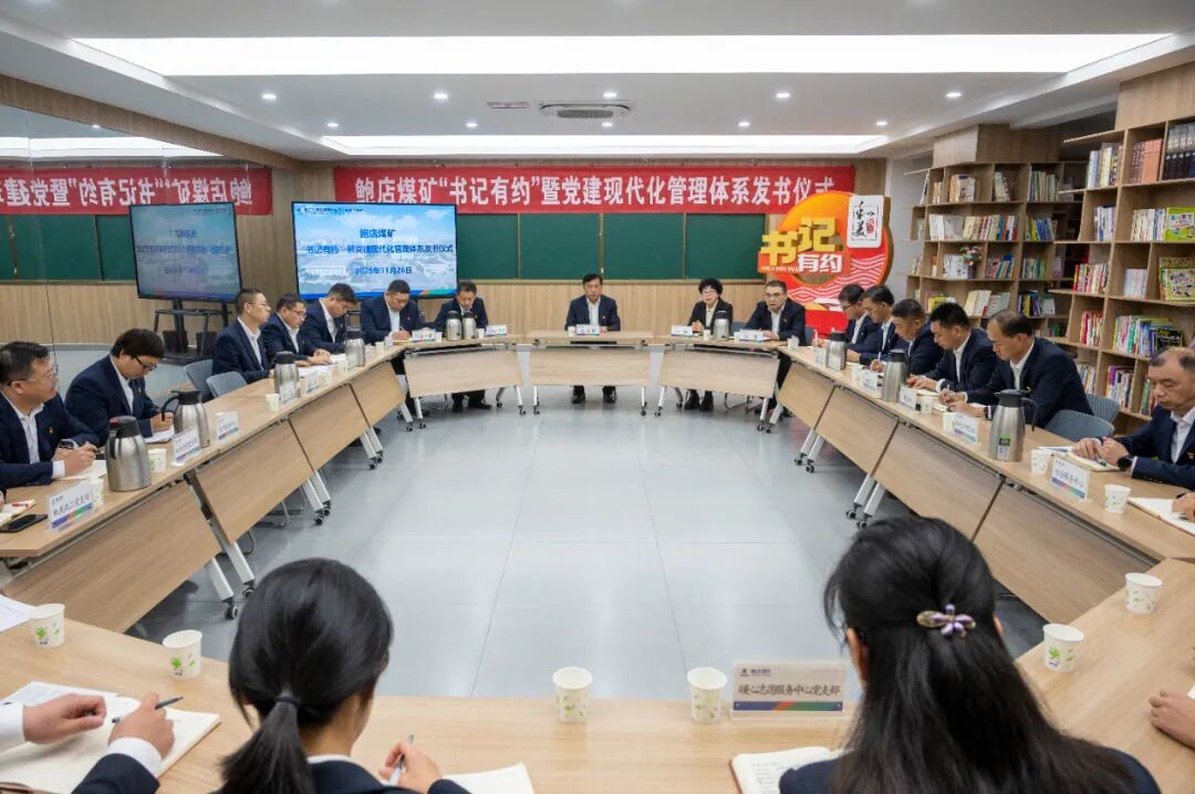 11月26日,鲍店煤矿在暖心志愿服务文化中心召开“书记有约”暨党建现代化管理体系发书仪式。