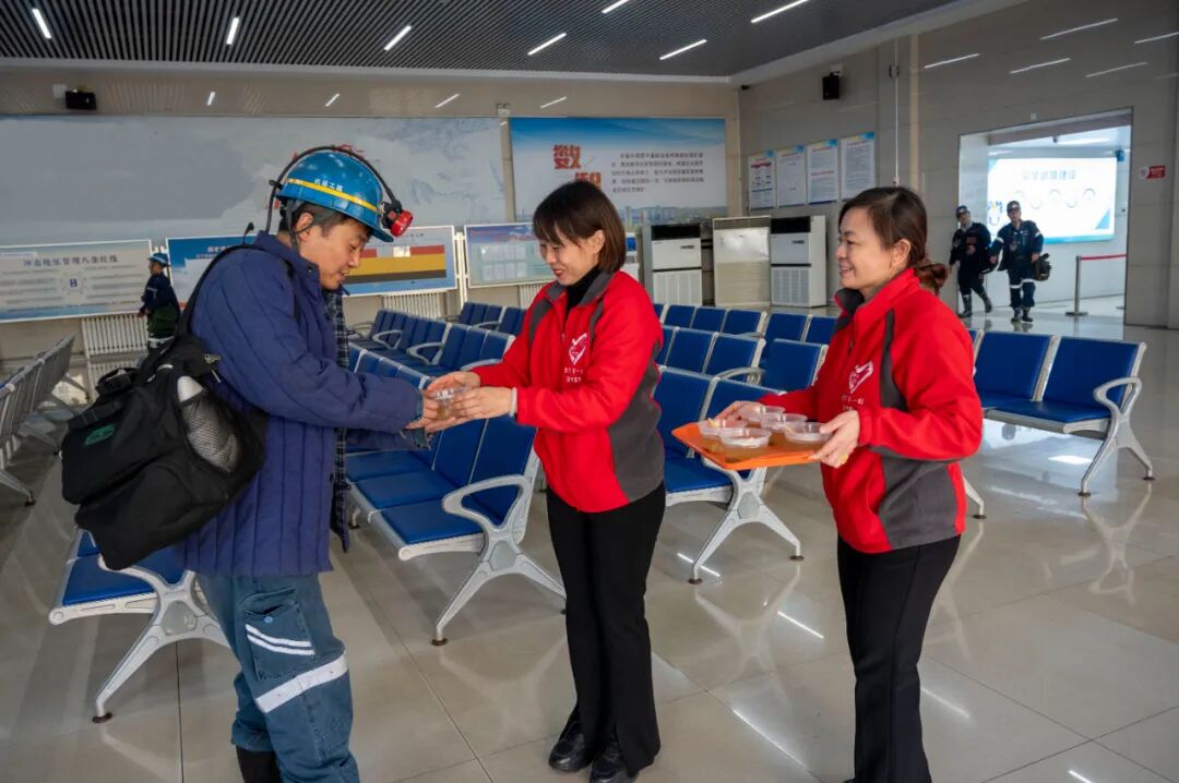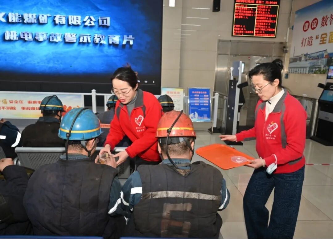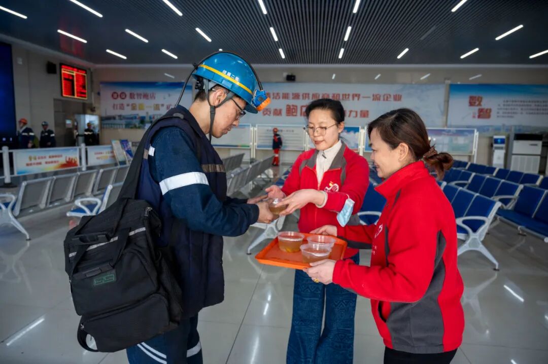 “师傅,快来喝碗金桔雪梨汤,可以缓解甲流症状。”“汤趁热喝,下井作业一定要注意安全,做好安全防护”……女工协管员们一边向上下井职工递汤,一边不忘叮嘱他们注意安全。