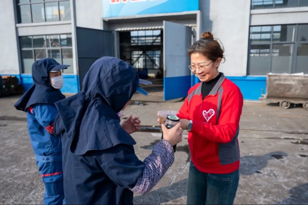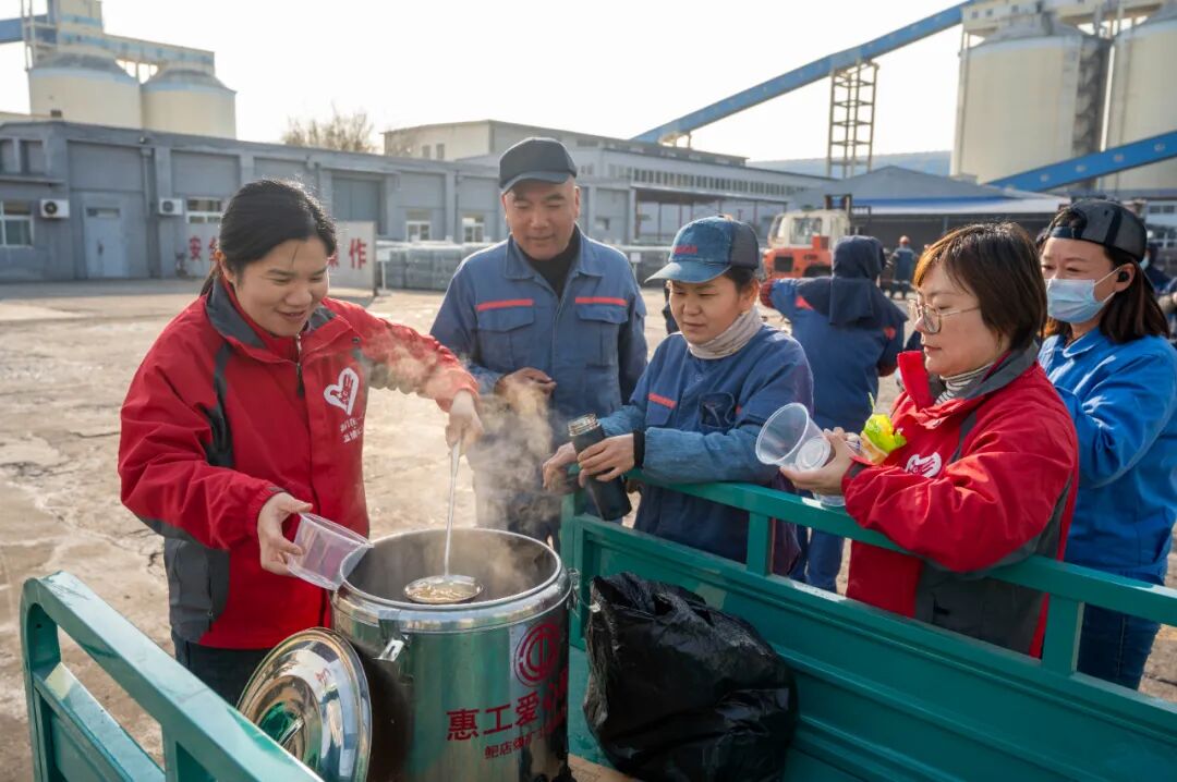 在生产服务中心西场地作业现场,拉着保温桶的三轮车刚停稳,就被正在忙碌的职工们围住。“大家先歇会儿,喝碗热汤暖暖身子!”职工们品尝着美味的金桔雪梨汤,脸上洋溢着幸福的笑容。