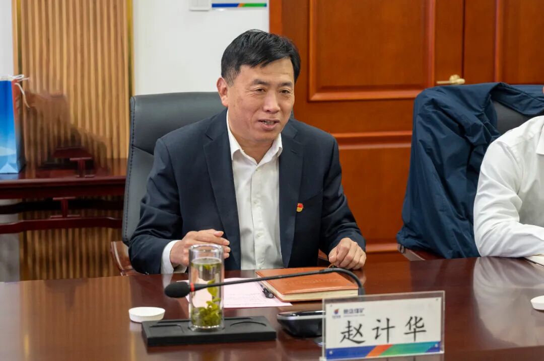 赵计华欢迎山东省能源工会领导来矿调研指导工作,简要介绍了矿井基本情况及党建、工会工作开展情况。