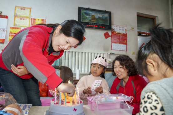 “爱心妈妈”结亲帮扶小组为困难家庭儿童过生日。
