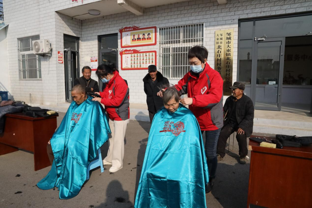 志愿者走进邹城北石庄村开展结对共建志愿服务活动。