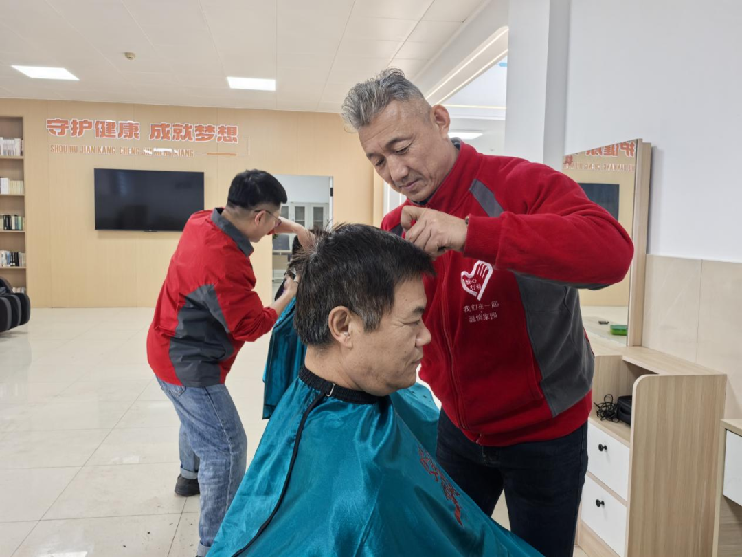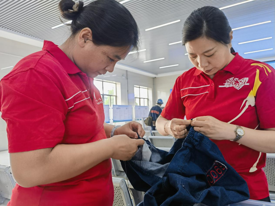 暖心志愿者为职工缝补衣物、制作鞋垫。