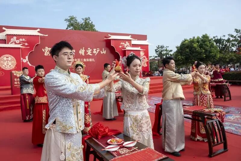 10月1日,该矿在“党建+企业文化”主题广场举办了“家国同心情定矿山”青年职工集体婚礼。10对身着传统华裳的新人,以一场浸润中华礼序之美的婚典,许下一生之约,既收获了属于自己的幸福,也为祖国生日献上了独特的“家国同庆”祝福。