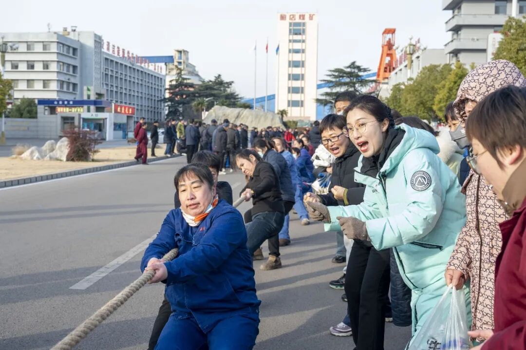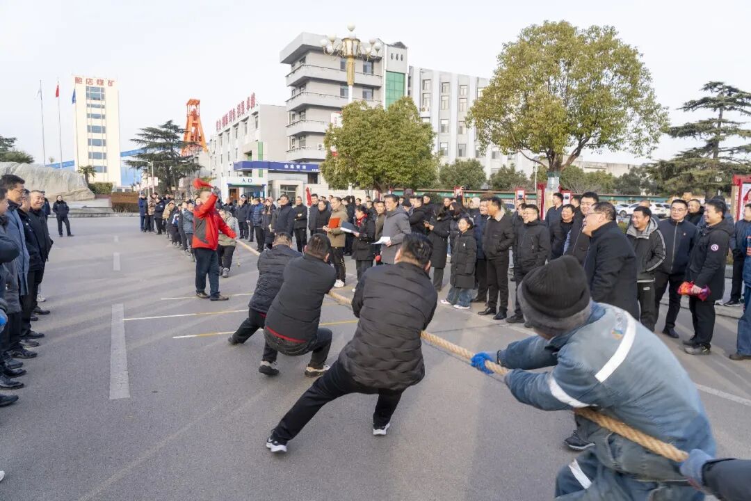 一队人、一根绳、一股劲、一条心。1月1日,鲍店煤矿的泰和剧院前欢声笑语、人头攒动,该矿迎新年职工拔河比赛在此火热举行。来自全矿各单位的18支男子代表队与11支女子代表队参加比赛,以拼搏姿态辞旧迎新,用团结力量凝聚发展共识。矿长靳绍波、党委书记赵计华及在家的领导班子成员、相关部室负责人观摩了比赛。