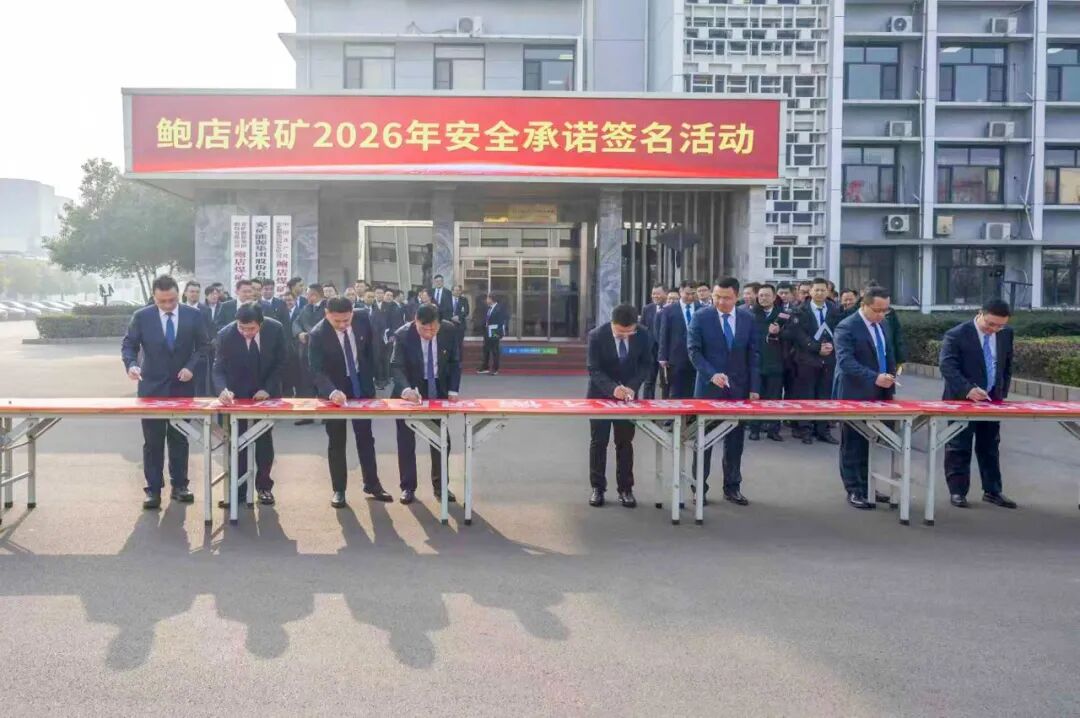 会上传达了两级公司年度会议精神、《鲍店煤矿2026年经济工作方案和考核意见》《鲍店煤矿关于加强2026年安全生产工作的决定》,通报了2025年安全检查考核情况。生产技术部、综采二区、综掘二区、运搬工区、洗选发运中心负责人依次上台作表态发言。会议结束后,与会人员共同参加“安全承诺签名”活动。