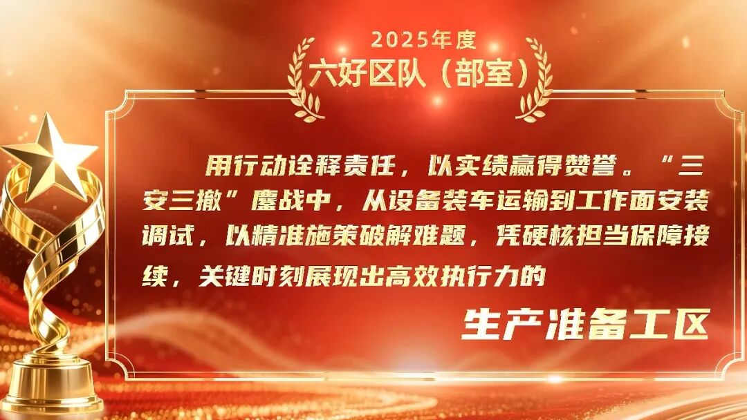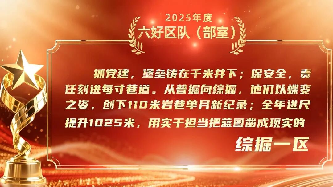 1月23日,鲍店煤矿在泰和剧院举行“稳中求进快发展、全面一流勇担当”颁奖典礼,对2025年度先进典型进行表彰,进一步凝聚共识、鼓舞干劲。为充分发挥榜样示范引领作用,矿媒体开设“追光·榜样”专栏,集中展示先进典型卓越风采,引导干部职工以榜样为镜、向标杆看齐,切实扛起“挑大梁、走在前、做示范”责任,全力推动全面一流矿井建设迈上高水平。让我们一同走近身边的标杆,感受他们闪耀的精神光芒。