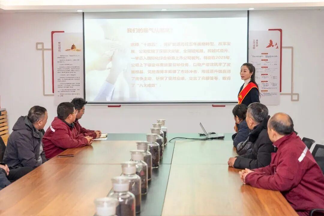宣讲团采用“微宣讲”“微课堂”“青年说”等灵活多样的形式,把两级公司的决策部署转化为职工听得懂、记得住的家常话。截至目前,宣讲团已深入全矿28家单位开展宣讲40余场次,覆盖干部职工2500余人次。