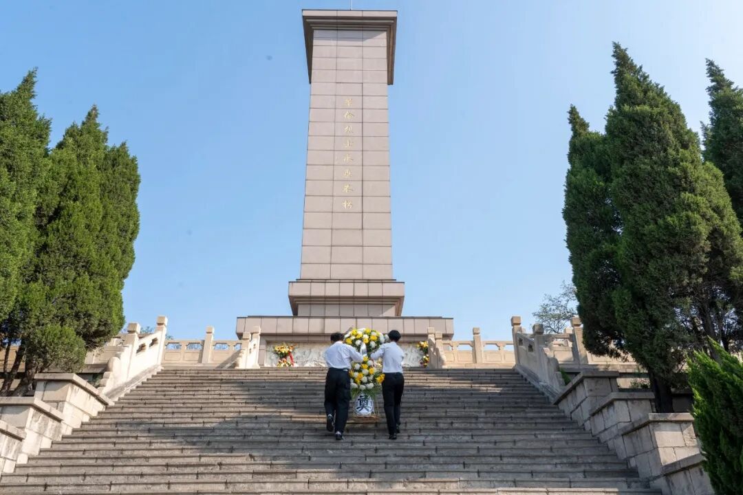 烈士陵园广场庄严肃穆,青年们怀着无比崇敬的心情,整齐列队于革命烈士纪念碑前,低头默哀、敬献花圈,向为民族独立、人民解放英勇献身的革命先烈致以深切哀思。