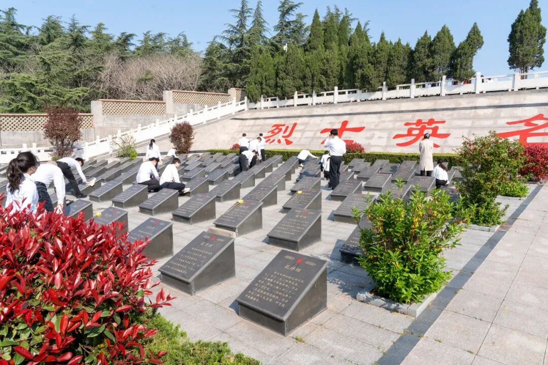 随后,大家分组开展墓碑清扫工作,手持毛巾仔细擦拭每一块墓碑,清理墓间杂物,用实际行动告慰英烈英魂。驻足墓碑前时,革命先烈的名字在心中久久回响,青年们时而感慨先烈壮举,时而沉思历史使命,红色精神的种子在心底悄然生根。
