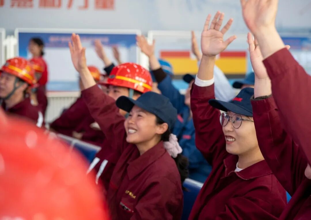 现场职工踊跃举手、积极抢答